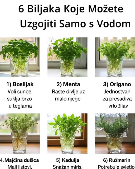 Uzgajanje bilja kod kuće nikada nije bilo jednostavnije! 🌞 Sve što vam treba su čiste staklene tegle, malo vode i svjetla. Evo šest začinskih biljaka koje savršeno rastu bez zemlje – direktno u vodi!